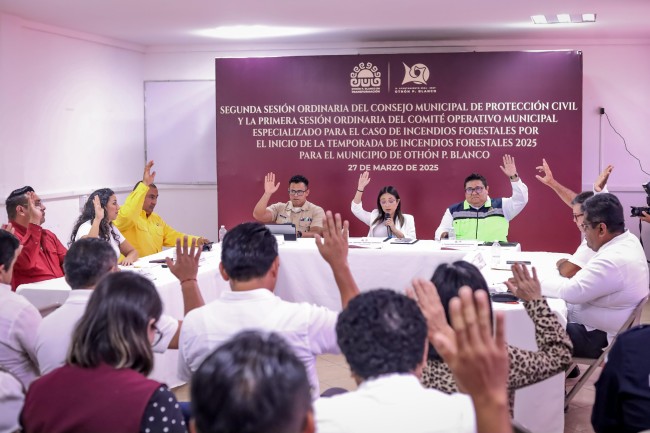 En la Segunda Sesión Ordinaria del Consejo Municipal de Protección Civil y la Primera Sesión Ordinaria del Comité Operativo Municipal Especializado para el caso de Incendios Forestales, encabezada por la presidenta municipal de Othón P. Blanco, Yensunni Martínez Hernández, se presentó y aprobó el Programa Operativo de Incendios Forestales, además de declarar el inicio de la Temporada de Incendios Forestales 2025 en el Municipio de Othón P. Blanco.