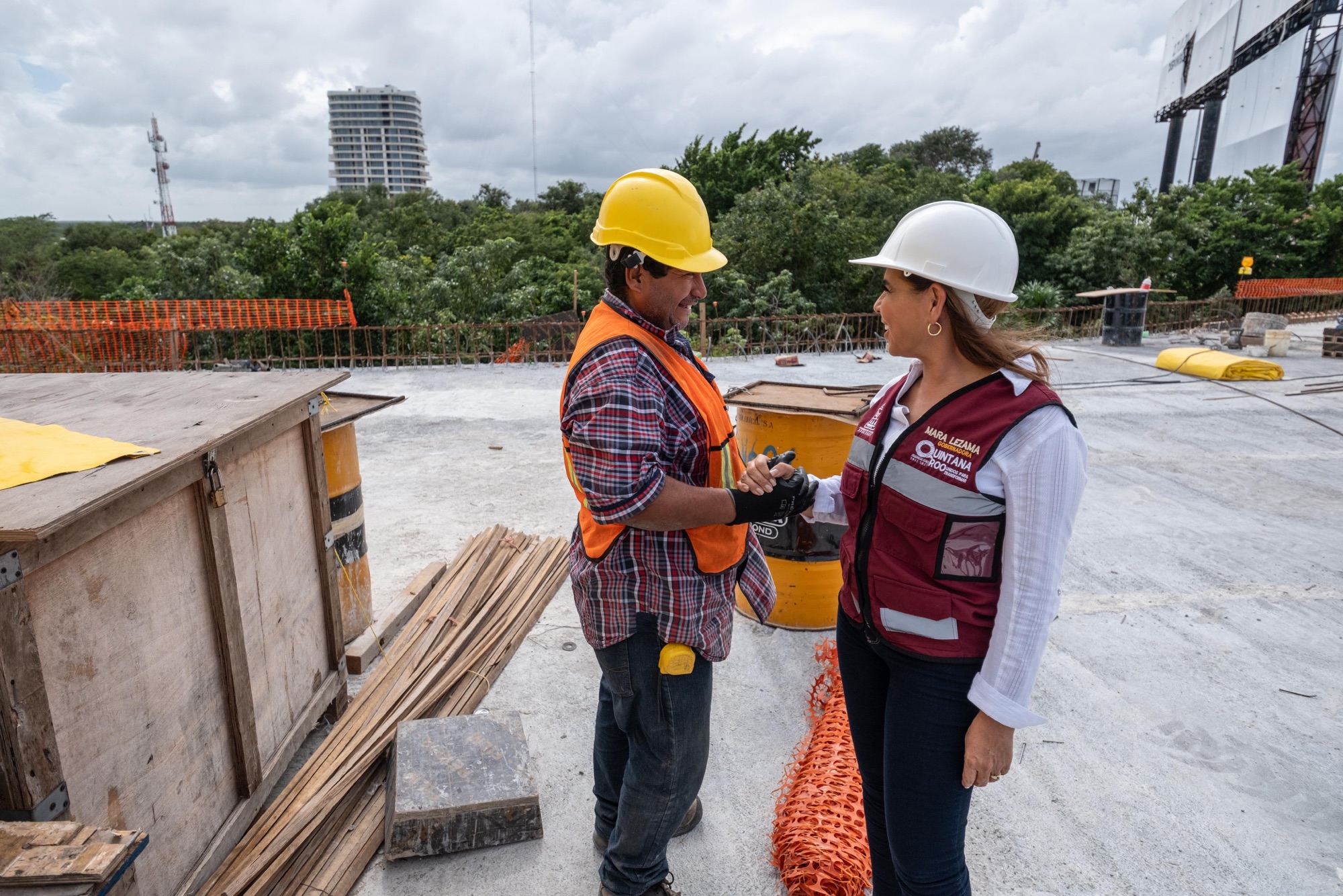 La gobernadora Mara Lezama Espinosa recorrió la construcción del puente vehicular Nichupté, una de las grandes obras de infraestructura que promovió, junto con el Tren Maya, en la Feria Internacional de Turismo (FITUR) de España a fin de atraer nuevas inversiones y crear más empleos mejor pagados para la gente.