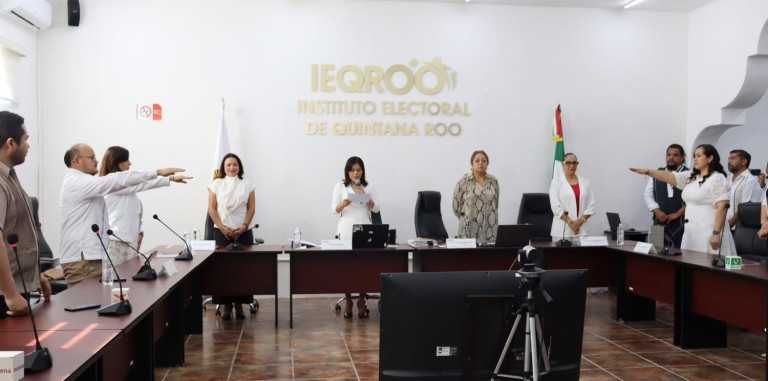 Rinden protesta en el cargo las consejeras y el consejero electoral Nora Leticia Cerón González, Patricia del Rocío Cortés Pastrana y Julio Asrael González Carrillo, designados por el Instituto Nacional Electoral (INE) por un periodo de siete años para integrar el Consejo General del Instituto Electoral de Quintana Roo (IEQROO).