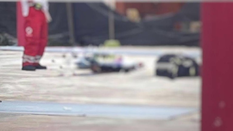 El percance ocurrió minutos antes de las 14:00 horas de este jueves, cuando fueron alertados paramédicos de la Cruz Roja sobre una persona lesionada quien había caído desde una altura de cinco metros cuando realizaba sus labores en lo alto de la construcción del domo deportivo en la escuela primaria.
