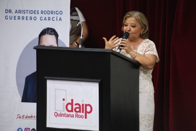 La confianza ciudadana se sostiene en la transparencia, el acceso a la información y la rendición de cuentas, expresó la titular de la Secretaría Anticorrupción y Buen Gobierno (SABGOB) Reyna Arceo Rosado en su mensaje de bienvenida a la conferencia magistral “Nuevos escenarios para el acceso a la información y protección de datos personales” impartida por Arístides Rodrigo Guerrero García, y organizada por el IDAIPQROO.