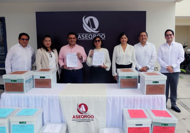 En un acto protocolario, la Magistrada Presidenta Minerva Maribel Moreno Cruz entregó la documentación correspondiente al ejercicio fiscal 2024 al titular de la Auditoría Superior del Estado de Quintana Roo (ASEQROO), Miguel Zogby Cheluja Martínez, cumpliendo así con las obligaciones establecidas en la normatividad aplicable.