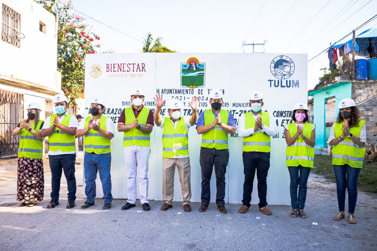 Preocupados por elevar el nivel de vida de todos los habitantes de Tulum, el presidente municipal Marciano Dzul Caamal y regidores del H. Ayuntamiento, dieron banderazo a una obra más de infraestructura urbana, con el arranque de la construcción de banquetas y guarniciones en la colonia Ejidal, primera etapa.