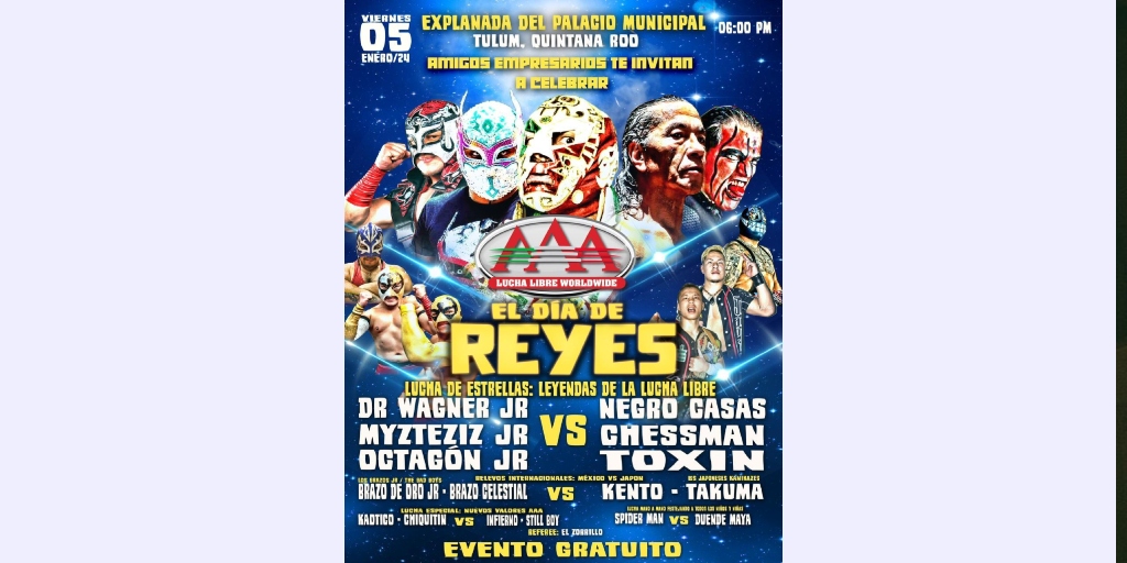 Con una impresionante cartelera de la Lucha Libre Worldwide, Tulum festejará en grande el Día de Reyes 2024 en un evento completamente gratuito organizado por Amigos Empresarios en coordinación con el Ayuntamiento.