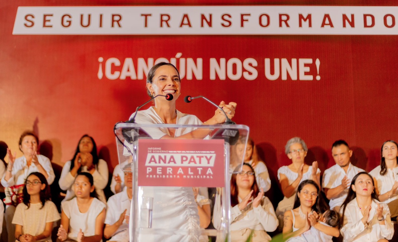 “Acompáñenme de la mano para seguir transformando Cancún. Redoblemos esfuerzos para seguir la transformación que viene en cascada desde Palacio Nacional, desde donde se lidera la visión de esperanza y prosperidad alcanzable para todos de manera justa, con trabajo y esfuerzo. ¡Vamos por ese Cancún de bienestar social que nos merecemos, vamos juntas y juntos durante los próximos años!”, subrayó la Presidenta Municipal, Ana Paty Peralta, en su mensaje a las y los cancunenses después de un año de trabajo por la construcción de una mejor ciudad.