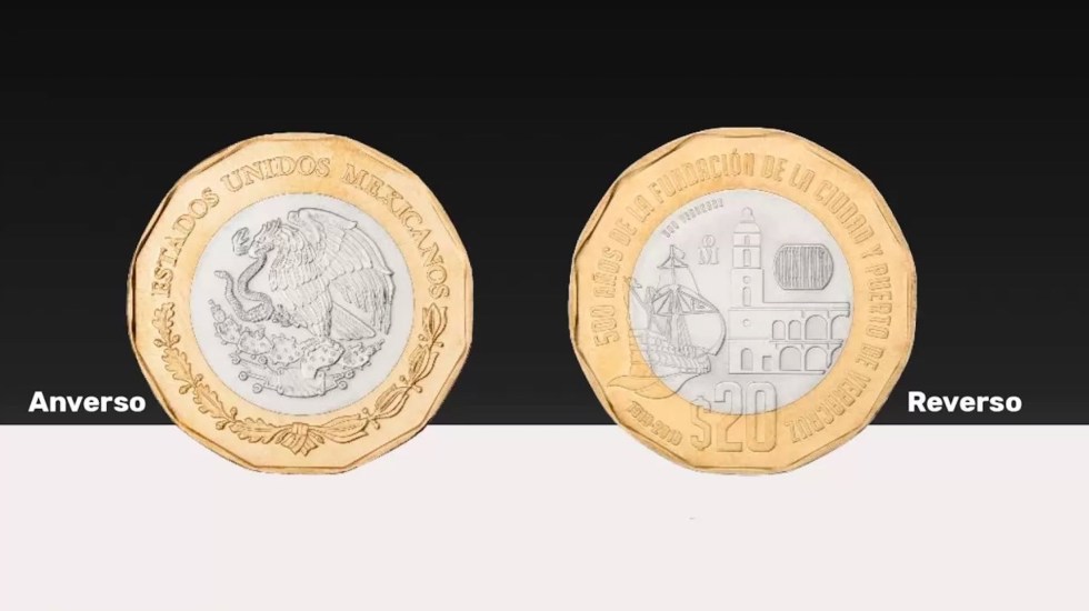 El Banco de México (Banxico) anunció la puesta en circulación de una moneda de 20 pesos, la cual conmemora los 500 años de la fundación de la ciudad y puerto de Veracruz.