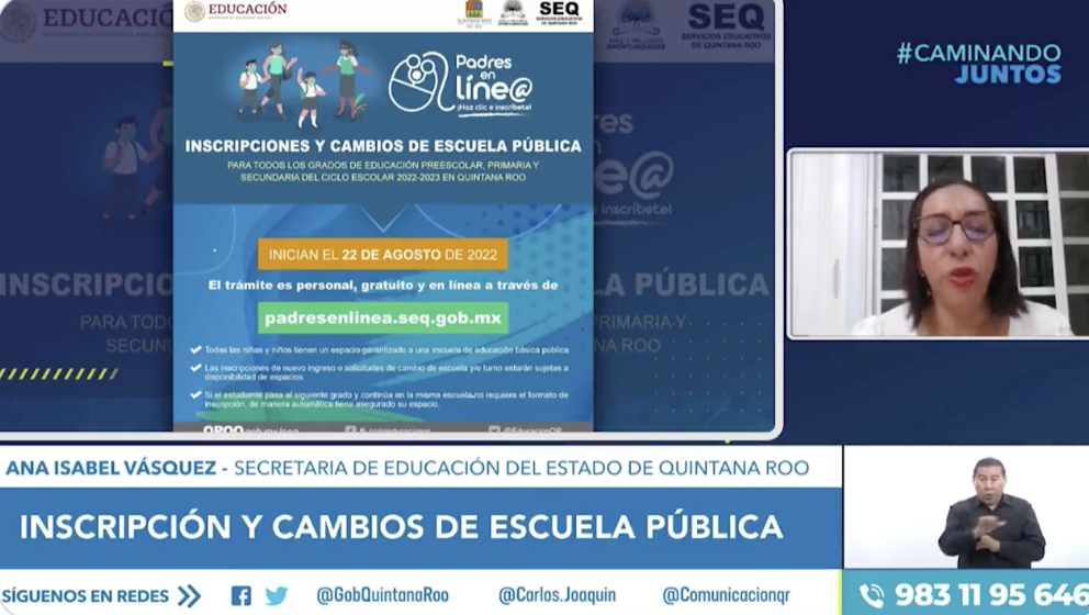 La titular de la Secretaría de Educación en Quintana Roo (SEQ), Ana Isabel Vásquez Jiménez dio a conocer que el 22 de agosto inicia la cuarta etapa de registros para menores que cursan educación básica, mismo que concluye el 23 de septiembre, hasta este momento está garantizado el cupo para todos y todas, pues todavía tienen espacios disponibles.