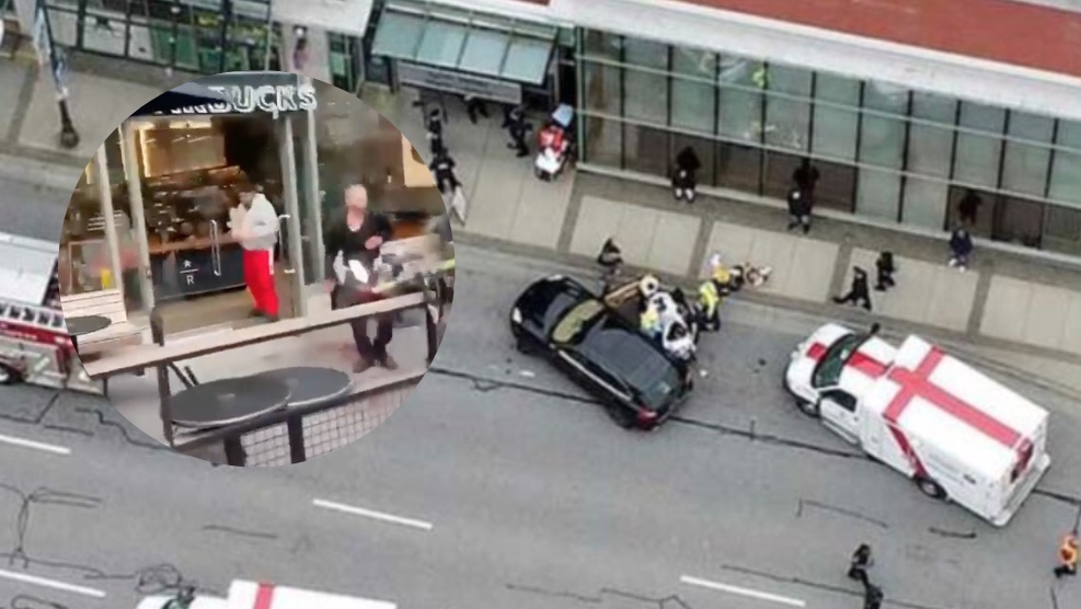Uh nombre fue apuñalado a plena luz del día en Vancouver, Canadá. Un sujeto que iba por el lugar, grabó el momento en que la victima cae al suelo.