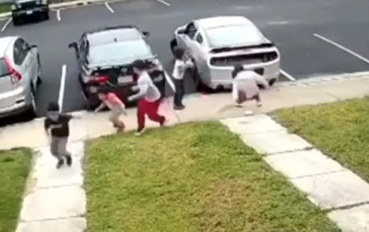 En el video se ve a un grupo de unos cinco niños jugando en una acera en una zona residencial en el condado Prince William, cuando el momento inocente es interrumpido.