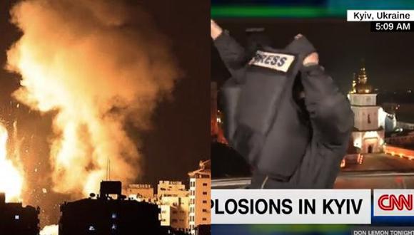 Matthew Chance se colocó el chaleco antibalas y su casco cuando se encontraba transmitiendo en vivo a través de la cadena estadounidense CNN desde Kiev, Ucrania.