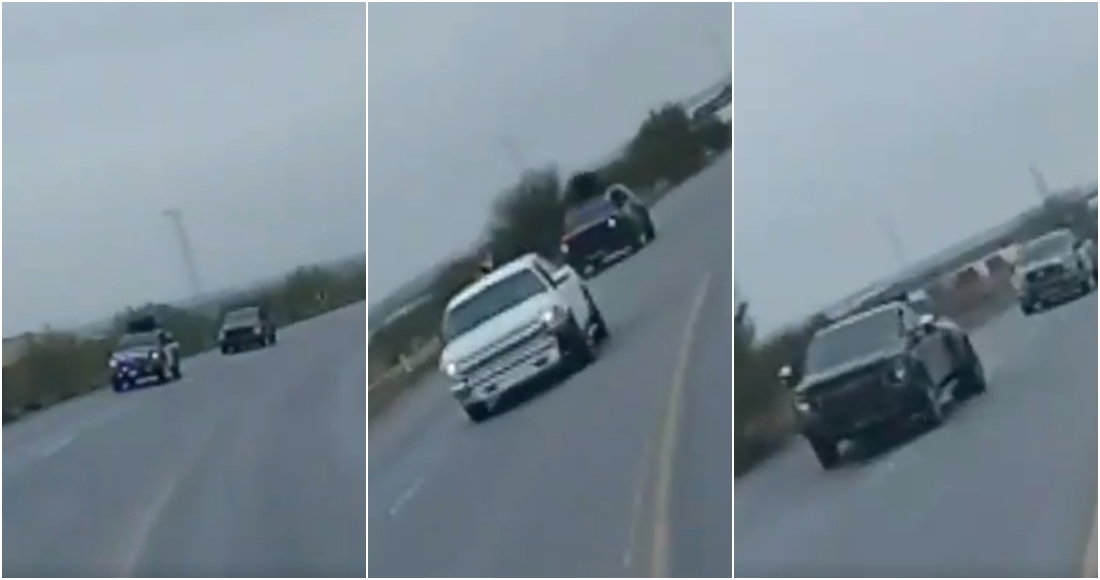 Ciudad de México.- Un convoy conformado por varias camionetas rotuladas con las siglas CDN (Cártel Del Noroeste) fue captado en video a plena luz del día mientras circulaba por una vialidad de Nuevo Laredo, Tamaulipas.