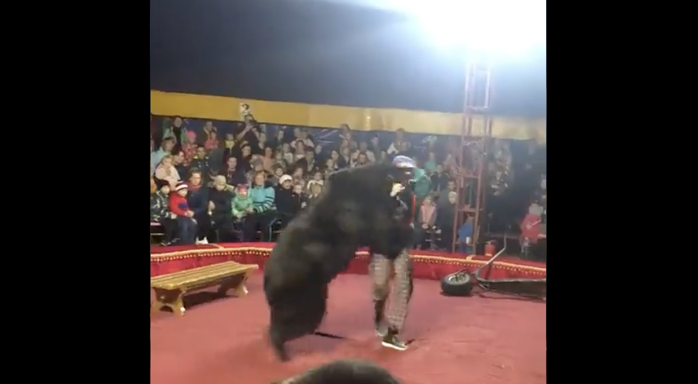 En un video que circula a través de redes sociales se observa a un oso que forma parte del entretenimiento en un circo, «seguir» las instrucciones y de un momento a otro irse sobre su líder, los espectadores de inmediato intentaron proteger a sus hijos mientras un trabajador intentó a patadas, hacer a un lado al oso.