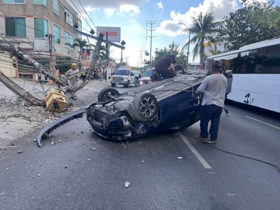 El accidente se registró alrededor de las 09:26 horas, en el cruce de la avenida Kabah con la calle Boca Paila, cuando el conductor perdió el control de la unidad al intentar incorporarse a la vialidad principal, lo que provocó que se impactara contra la estructura eléctrica y posteriormente volcara.