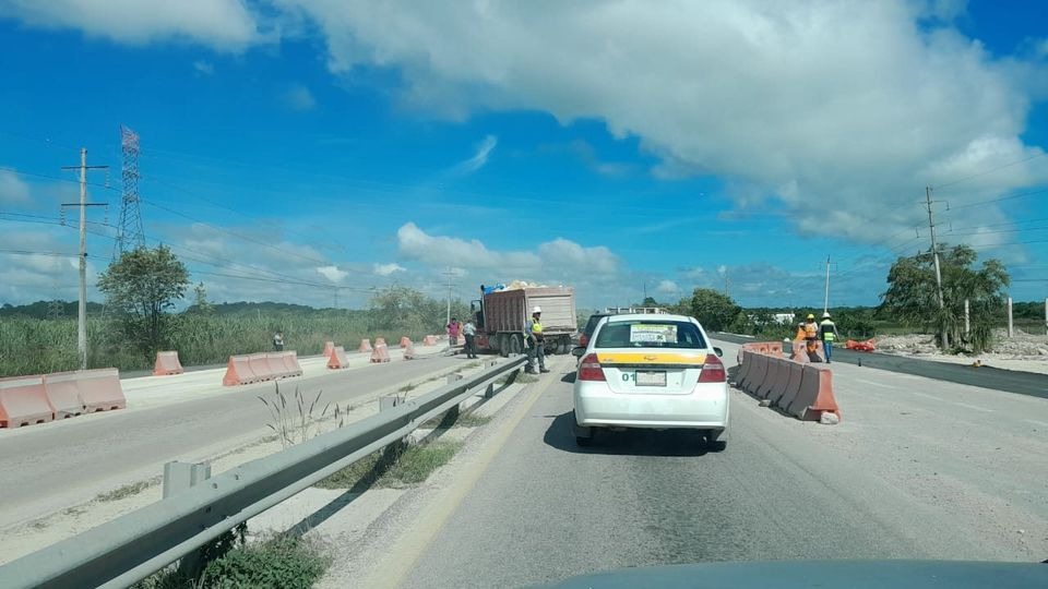 Primeras versiones señalan que el conductor de la pesada unidad, la cual transportaba material empleado en el Tren Maya, habría perdido el control y terminó proyectándose contra el muro de contención, destruyendo señalamientos e invadiendo el carril contrario.